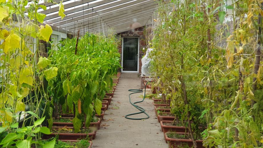 Раскидистый сад, стационарная современная теплица голландской технологии и грунтовые террасы;