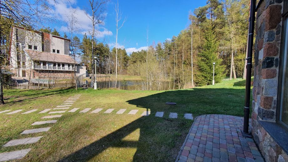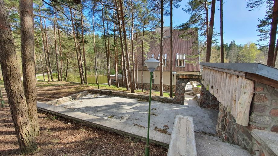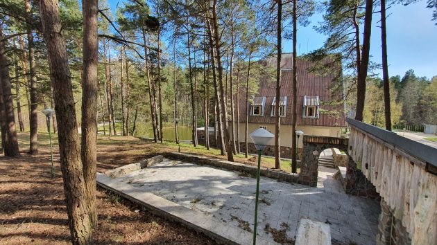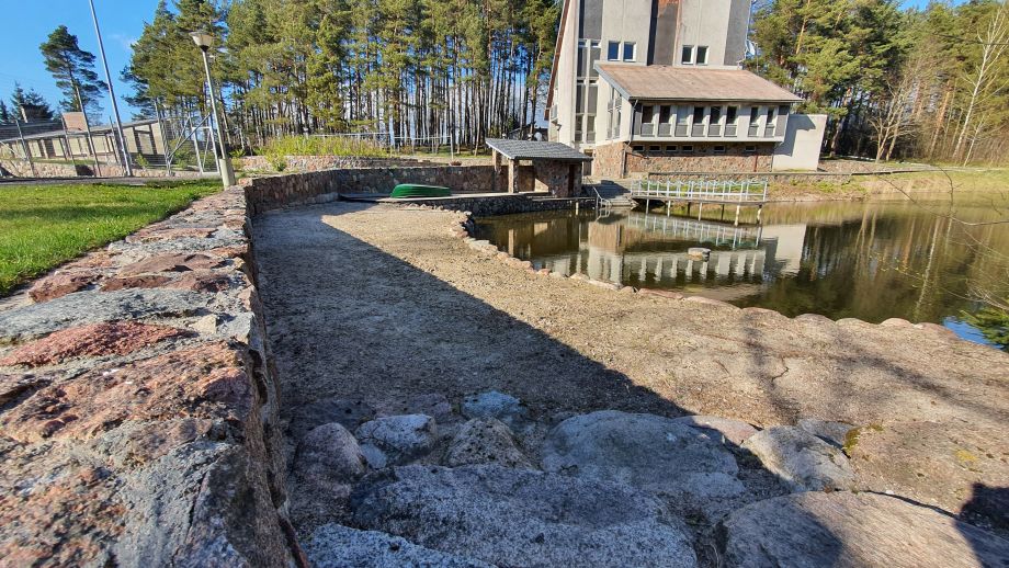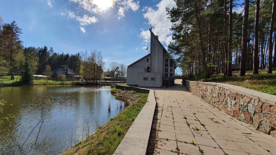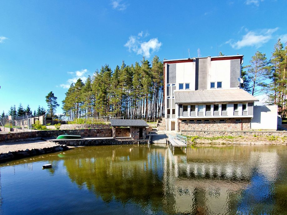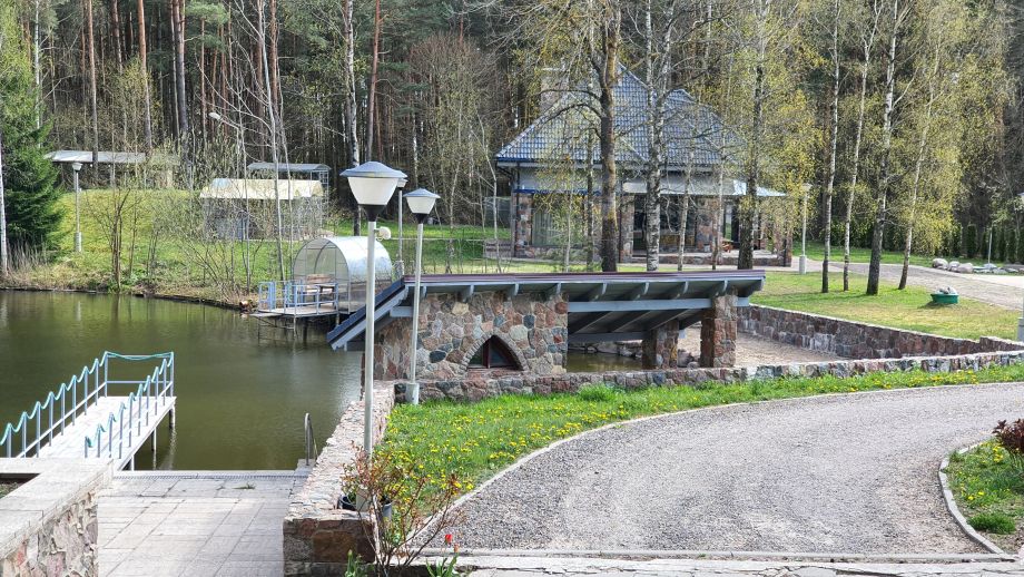 Большой, глубокий пруд с двумя пирсами, лодочной станцией, песчаным пляжем и отмелью, беседками, а также видовым разнообразием рыб;
