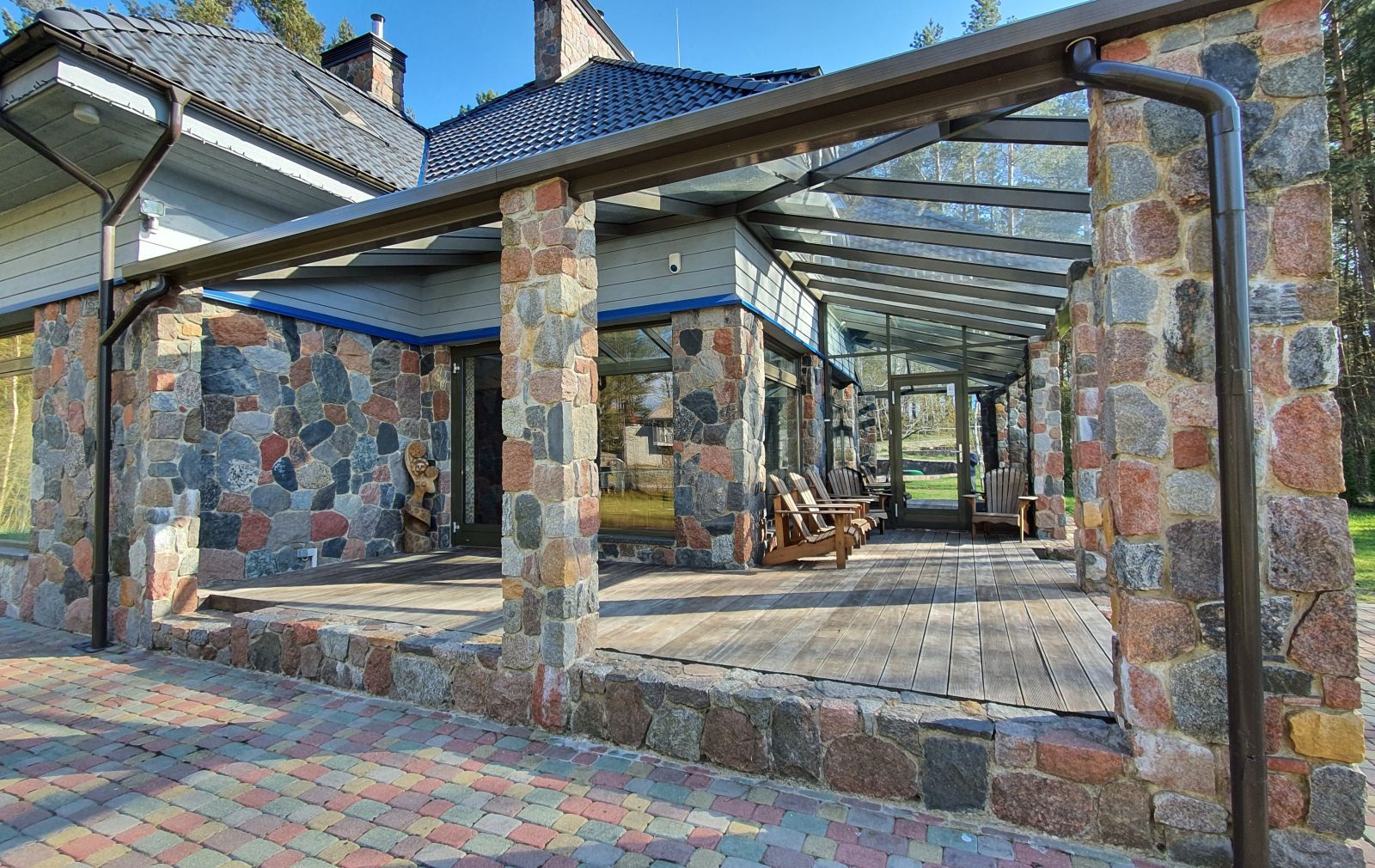 Четырехэтажный дом с огромной террасой, встроенной русской парной и бассейном, выходом к пруду и отдельной мангальной зоной;